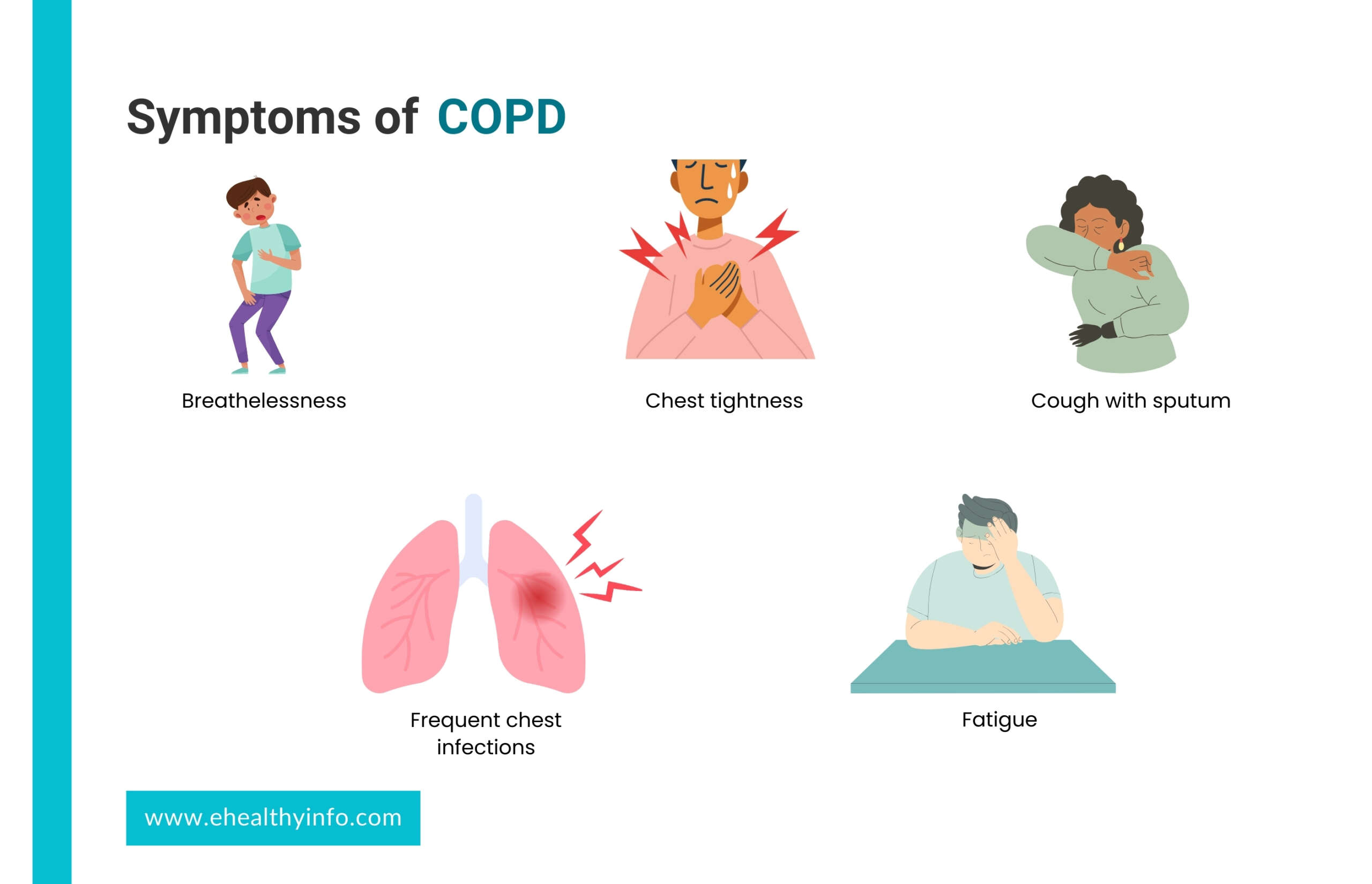 Symptoms of chronic obstructive pulmonary disease include breathlessness during physical activity, fatigue, coughing, and excessive production of phlegm or sputum. Initially, individuals may experience breathlessness only during exercise, but as the disease progresses, they may encounter difficulties exhaling or inhaling. It is worth noting that people in the early stages of COPD may not even be aware of their symptoms. Chronic obstructive pulmonary disease can manifest as emphysema, chronic bronchitis, or a combination of both, with the severity varying from person to person.