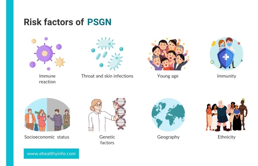 - Malnutrition and weakened immune systems increase the risk of PSGN. It can be more common in lower socioeconomic areas and certain ethnic groups.