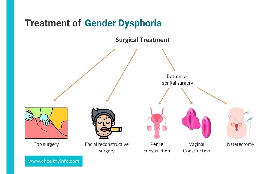 - Hysterectomy: Some people may choose to undergo a hysterectomy to avoid the dysphoric feelings associated with menstruation or to ease the process of lowering testosterone doses. It involves the removal of the uterus and ovaries (oophorectomy).